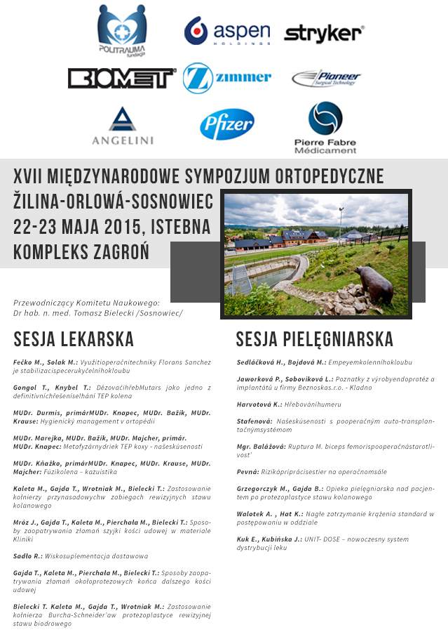 Fundacja Politrauma objęła patronat nad, odbywającym się w Istebnej, XVII Międzynarodowym Sympozjum Ortopedycznym. Przewodniczącym komitetu naukowego był dr hab. n. med. Tomasz Bielecki, ordynator oddziału urazowo-ortopedycznego Wojewódzkiego Szpitala Specjalistycznego nr 5 w Sosnowcu. Podczas sympozjum poruszane były szczegółowo różnorakie zagadnienia, a całość podzielona została na odrębne sesje dla lekarzy i pielęgniarek. Więcej informacji o wydarzeniu znajdziesz